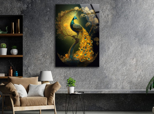 Peacock Wall Decor-Tempered Glass Wall Art-Peacock Wall Art-Glass Printing-Large Wall Art-Wall Hangings-Glass Wall Decor-Animal Wall Decor