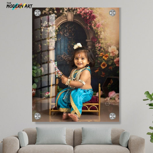 Custom Digital Acrylic Glass Photo – Baby Krishna Janmashtami Theme – Child Portrait Print for Home Décor & Gifting